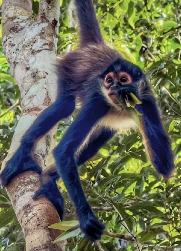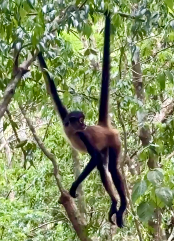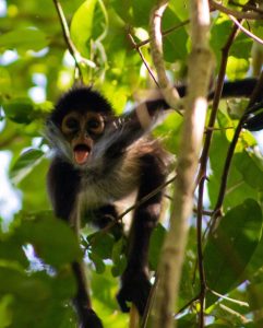 - Le Singe Araigné (Ateles geoffroyi) : Agile et gracieux, il doit son nom à ses longs membres et sa queue préhensile qui agit comme un cinquième bras. Vous le verrez souvent suspendu à la canopée, se déplaçant avec une rapidité déconcertante.